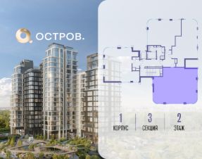 Продаётся 4-комн. квартира от застройщика: общая площадь 131.60 м², жилая 59.40 м², кухня 46.10 м², 2-й этаж, жилой квартал "Остров 12", корпус 1 (секция 3). Срок сдачи: 1 квартал 2029 года.