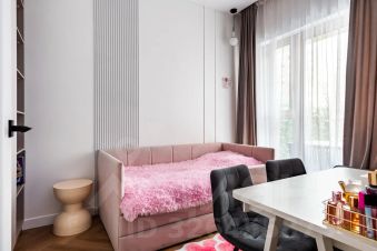 Функциональная планировка: входной коридор с системой хранения вещей, просторная кухня-гостиная с выделенной зоной отдыха, вместительная гардеробная, большой совмещенный санузел. В квартире две изолированные комнаты. Спальня с удобной кроватью с подъемным механизмом и ортопедическим матрасом, там же большой, вместительный шкаф для вещей. Вторая детская комната, полностью меблирована, но по желанию в ней можно устроить гостевую комнату или рабочий кабинет.