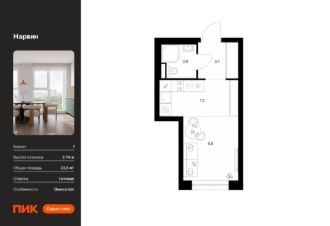 Новостройка! Продается 1-комн. кв-ра площадью 22,5 кв.м, (Корпус 1.3, Секция 3) 14 этаж 38-этажного дома в Нарвин от ПИК. Новый проект ПИК Серии плюс "Нарвин" возводится в Головинском районе Москвы.