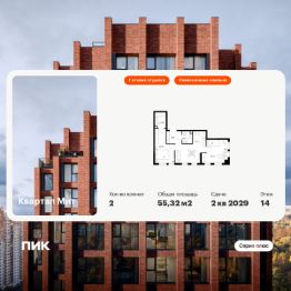 Новостройка! Продается 2-комн. кв-ра площадью 55,32 кв.м, (Корпус 3.4, Секция 4) 19 этаж 32-этажного дома в Квартал Мит от ПИК. "Квартал Мит" строится в экологически чистом районе Митино, где по соседству расположен большой лесопарк, а с двух сторон протекают реки Сходня и Журавка. Для семей с детьми здесь появится школа и два детских сада.
