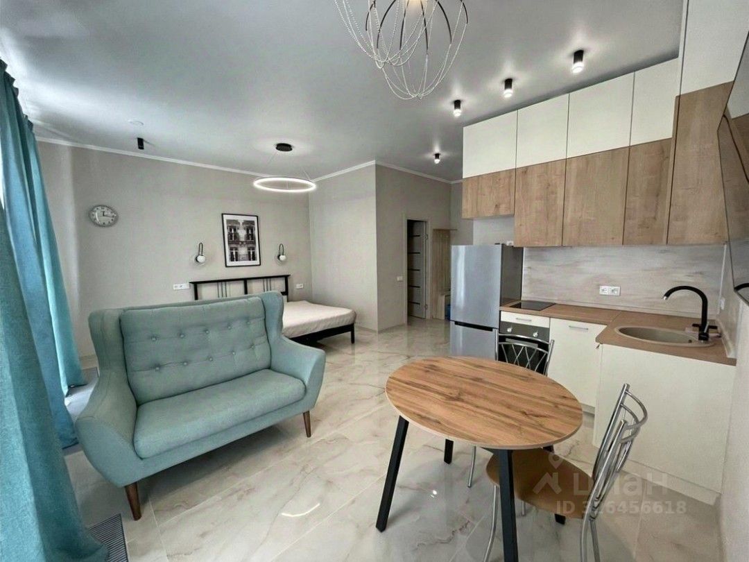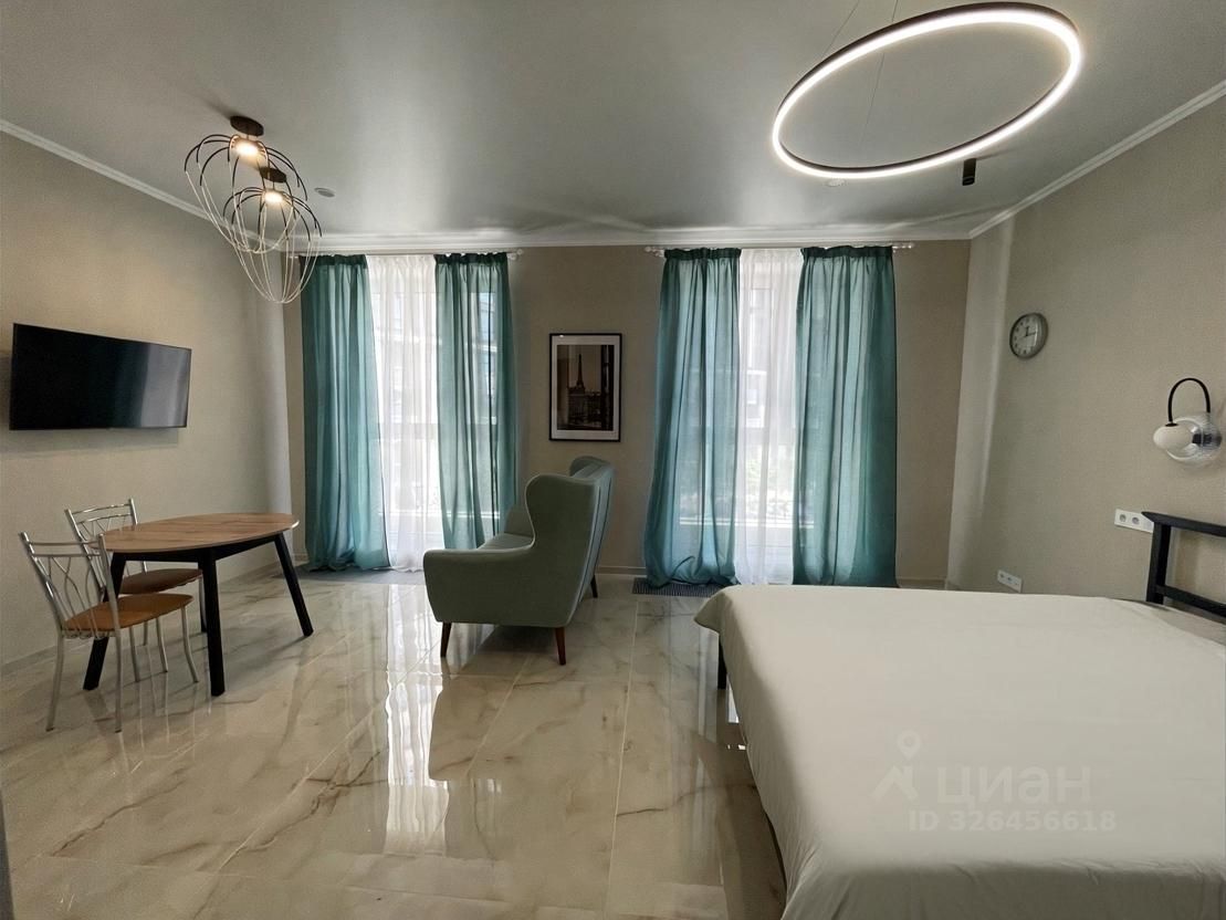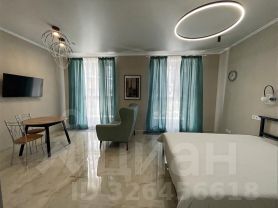 Квартира сделана по типу студии, просторная, современный ремонт, высокие потолки, панорамные окна + вместительная гардеробная; полностью меблирована и оснащена бытовой техникой; полы с подогревом.