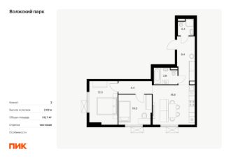 Продаётся 2-комн. квартира площадью 58,7 кв.м на 18 этаже 24 этажного дома (Корпус 6.2, Секция 1) проекта ПИК Волжский парк. Светлый просторный подъезд на уровне земли, функциональная планировка, большие окна, c отделкой.