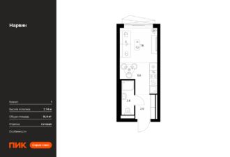 Новостройка! Продается 1-комн. кв-ра площадью 18,9 кв.м, (Корпус 1.3, Секция 3) 7 этаж 38-этажного дома в Нарвин от ПИК. Новый проект ПИК Серии плюс "Нарвин" возводится в Головинском районе Москвы.