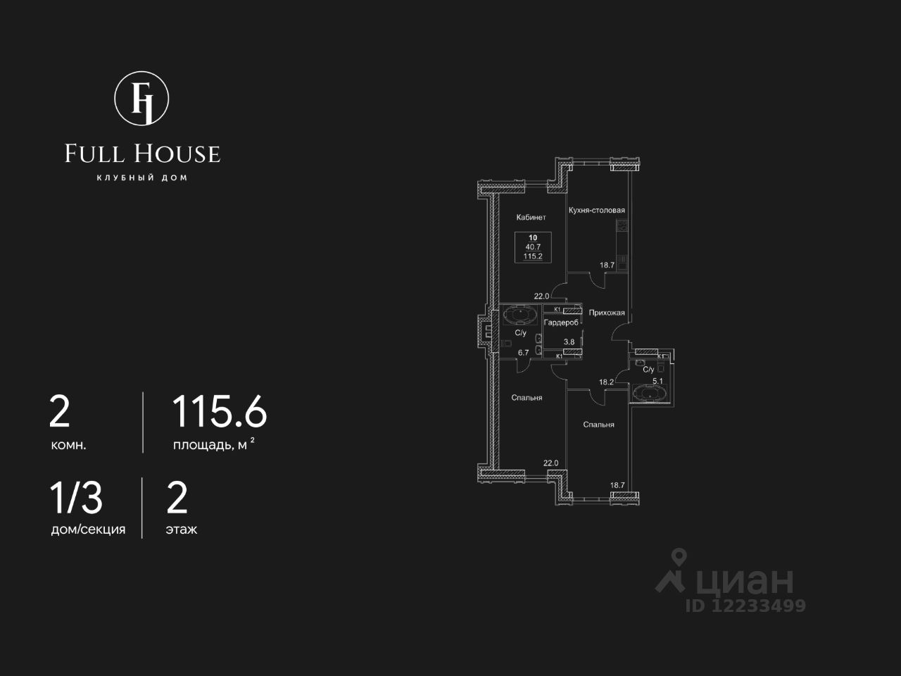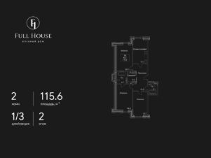 Продается 2-комнатная квартира в ЖК Full House на 2 этаже. Общая площадь квартиры составляет 115,6 кв.м. Квартира без отделки. Жилой комплекс сдан!