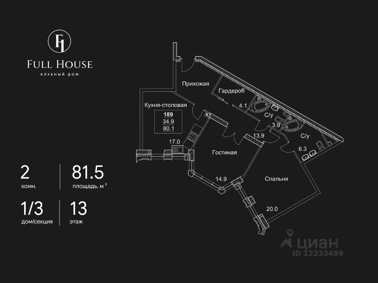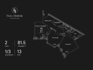 Продается 2-комнатная квартира в ЖК Full House на 13 этаже. Общая площадь квартиры составляет 81,5 кв.м. Квартира без отделки. Жилой комплекс сдан!