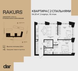 Продаётся 2-комнатная квартира 54.20 м² в жилом комплексе Ракурс. Квартиру отличают панорамное остекление, улучшенная шумо и воздухоизоляция. Дом сдаётся в 1 квартале 2028 года, продажи проходят через эскроусчета. Подземный паркинг, коворкинг, закрытая благоустроенная территория с фонтаном и артобъектами. Гибкие условия покупки.