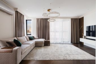 3 изолированные комнаты и гостинная- кухня логично спланированны и имеют большое количество шкафов вписанных в интерьер.Большая вместительная гардеробная.