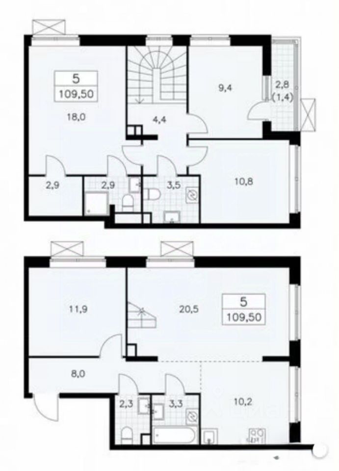 Арт. 129489110 Предлагается 2х этажная квартира, общей площадью 109,5 кв.м., расположенная в ЖК "Прокшино"