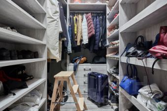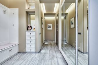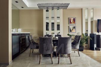 Квартира расположена на 6 этаже, общая площадь — 110 м². Планировка открытая и логичная: большая кухня-гостиная с мебелью и встроенной техникой, две изолированные спальни, два санузла, две гардеробные, отдельная постирочная и продуманные системы хранения. Пространство организовано так, чтобы было удобно жить, а не просто красиво на фото.
