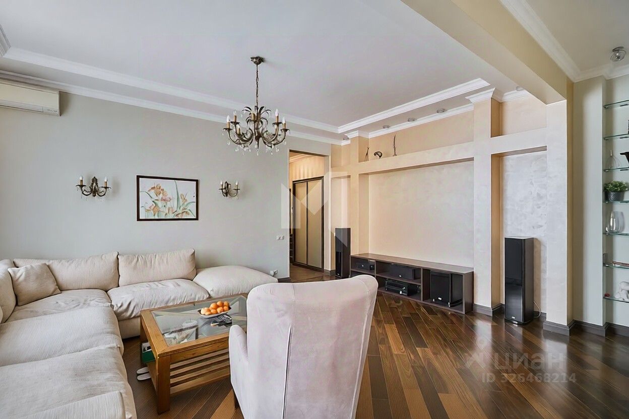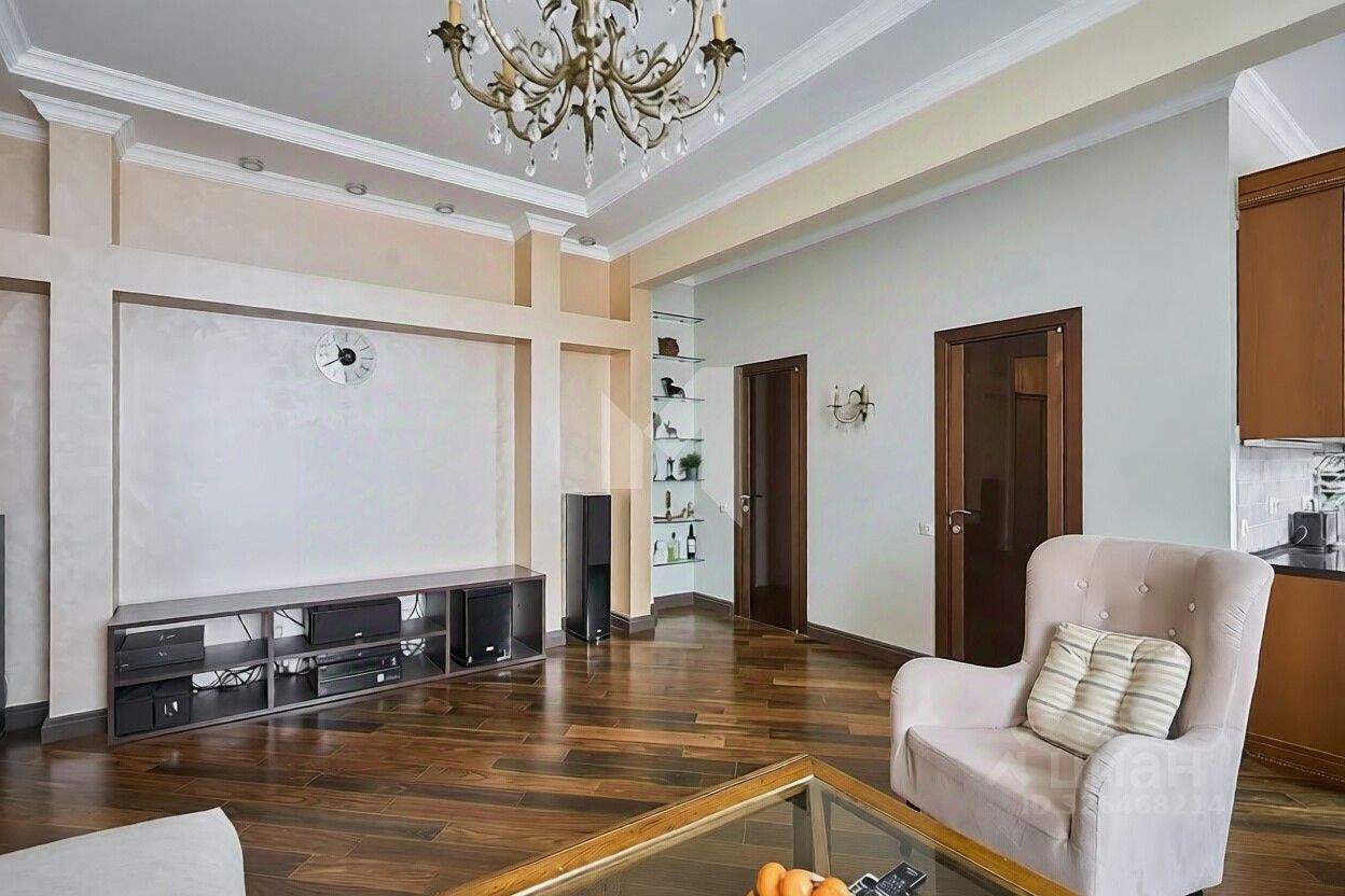 В каждой комнате кондиционер, несколько сценариев освещения. А большие окна с широкими каменными подоконниками, приятные виды на Дом правительства и набережную, высокие потолки 3,2м, хороший ремонт в лёгкой классике и наличие мебели с техникой будут приятным бонусом новому собственнику.