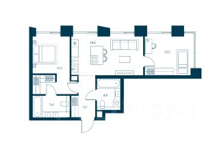 Функциональная планировка евро-3: две изолированные спальни и кухня-гостиная.