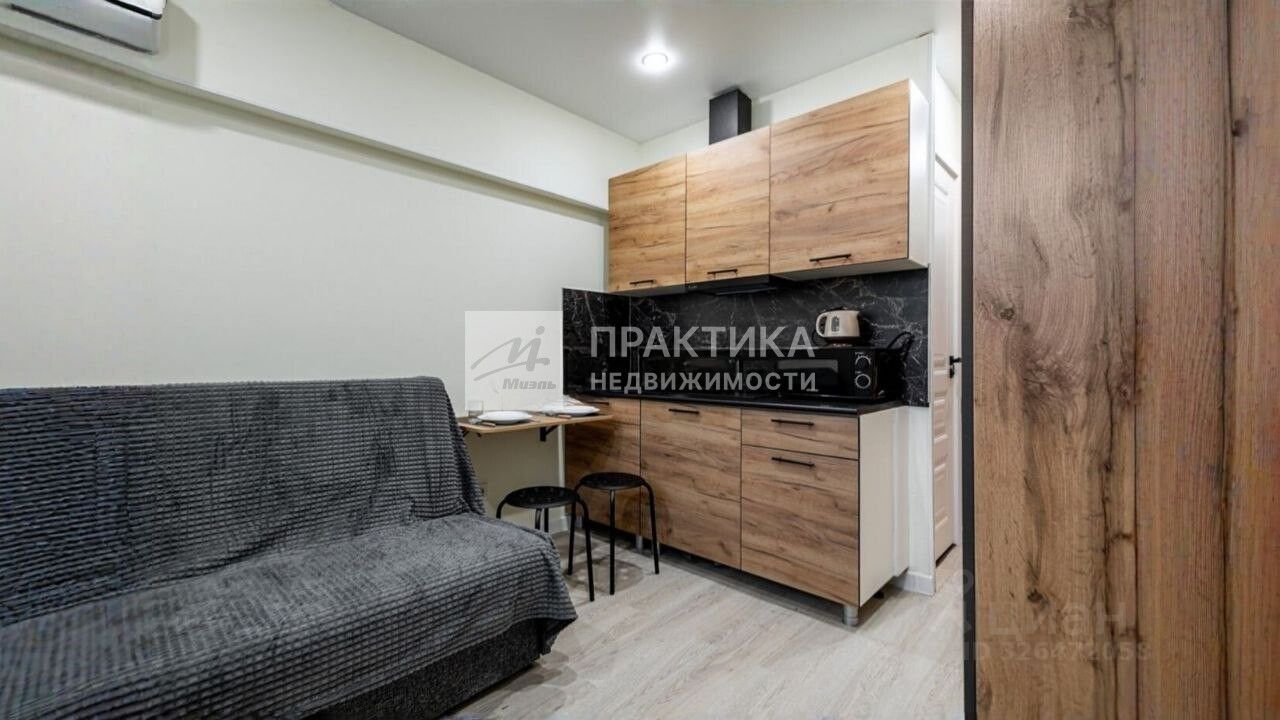 Уютная студия на высоком цокольном этаже с большим окном на улицу. Выполнен качественный дизайнерский ремонт в современном стиле. Пространство полностью укомплектовано для комфортного проживания: функциональная кухня, изящная мебель и вся необходимая техника остаются. Особое внимание уделено деталям: санузел отделан нескользящим керамогранитом, установлена современная сантехника. Обеспечена отличная освещённость.