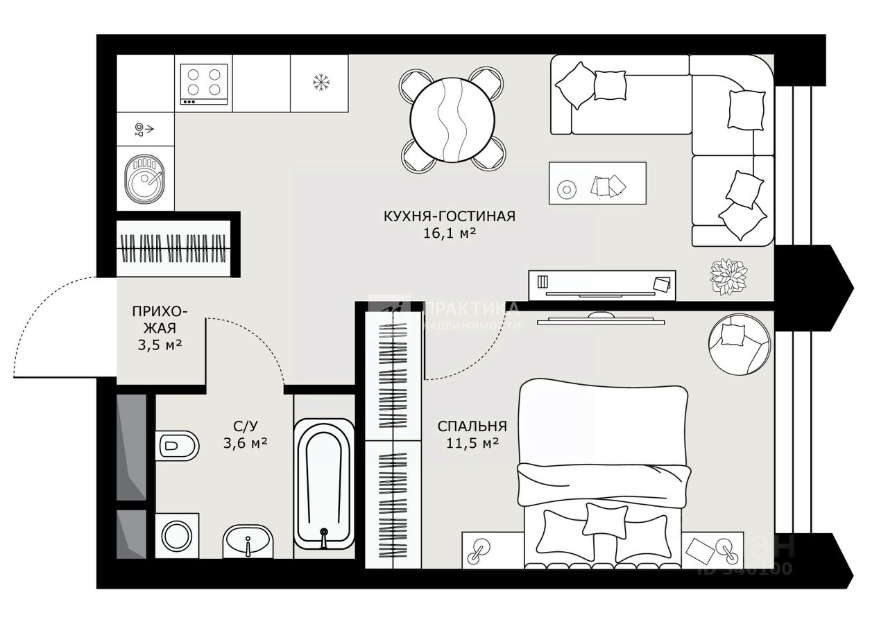 *отделка под ключ от застройщика: натяжные потолки, качественный ламинат, обои под покраску с лаконичной фактурой, входная дверь с дополнительной шумоизоляцией, санузел: пол — керамогранит, стены — крупноформатная плитка