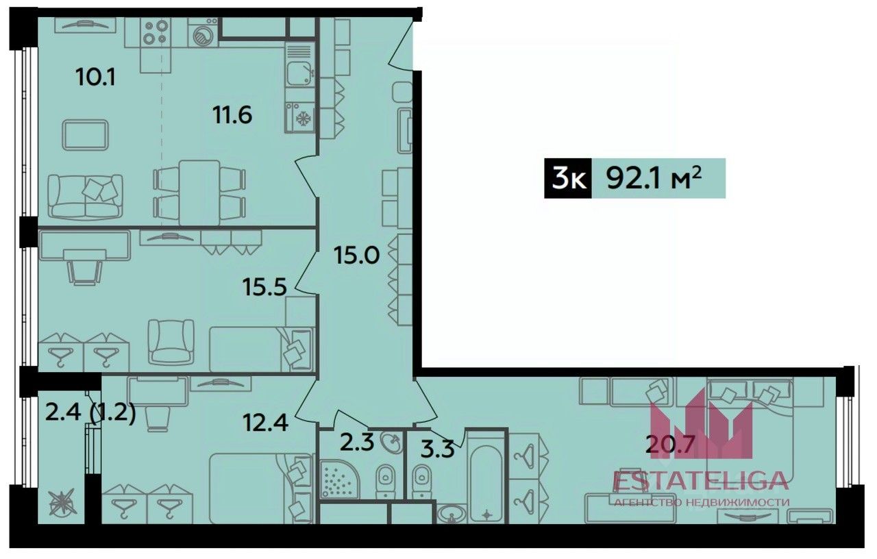 • Планировка с 3-мя изолированными комнатами: создают комфорт и личное пространство для всех жителей.