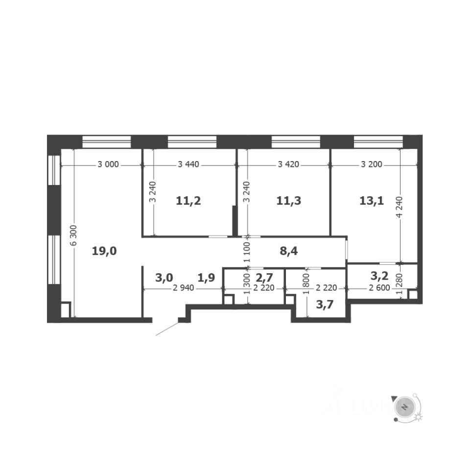 Продается 3-к квартира без отделки в ЖК "Shagal".