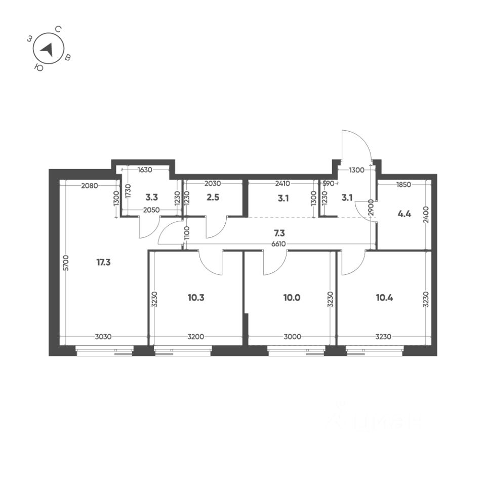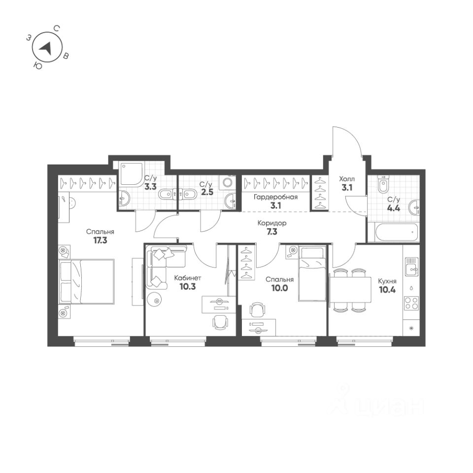 Продается 3-к квартира без отделки в ЖК "Shagal".