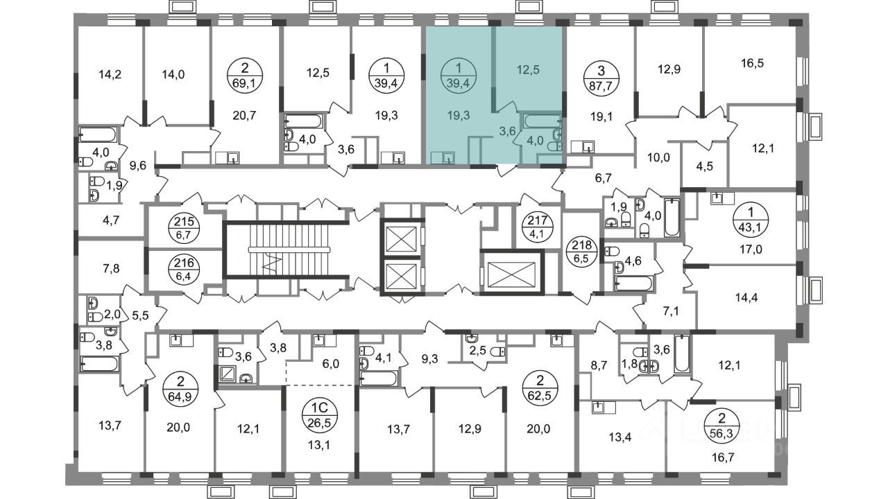 Общая площадь квартиры - 39,4 кв. м, этаж 8 из 19.