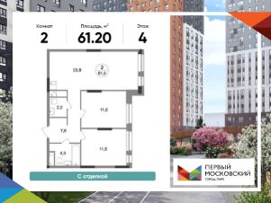 Продается двухкомнатная квартира с отделкой в 9 фазе города-парка "Первый Московский".