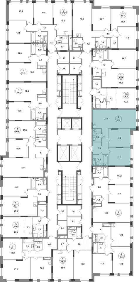 - в каждой секции корпуса - 4 лифта: 2 пассажирских, 2 грузовых
