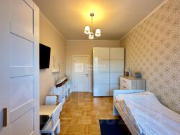 Выполнен ремонт с заменой систем канализации, водо- и энергоснабжения (медь), замена сантехники, выровнены стены под чистовую отделку, на полу паркетная доска, в санузлах плитка с подплиточным утеплением, встроенные шкафы в коридоре, выполнена перепланировка санузла с объединением ванной комнаты и туалета, установлена душевая кабина, установлен проточно-накопительный бойлер. Ремонт в светлых тонах с использованпием качественных импортных материалов. Покупателю останется вся мебель, находящаяся в квартире и вся бытовая техника.