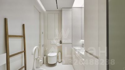 Сантехника представлена премиальным итальянским брендом Salini, гостевой санузел совмещён с постирочной, в которой установлена стиральная и сушильная машины, сушильный шкаф бренда ASKO. На кухне установлена бытовая техника ASKO: посудомоечная машина, большой холодильник, духовой шкаф, микроволновая печь, кофемашина встроенная в мебель и винный шкаф. Предусмотрены различные сценарии освещения, все шкафы с подсветкой.