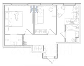Изолированная спальня с рабочим уголком, гардеробная, вторая комната-гостиная и кухня. Выполнен качественный, продуманный, дизайнерский капитальный ремонт с заменой всех коммуникаций. Теплый пол в санузле.