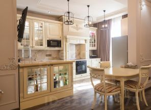Продается трехкомнатная квартира на последнем этаже в современном доме бизнес-класса в районе ЖК "Румянцево-Парк". Планировка включает две изолированные спальни и просторную кухню-гостиную с двумя окнами, что обеспечивает обилие естественного света. Квартира находится в отличном состоянии с качественным дизайнерским ремонтом, выполненным пять лет назад в классическом стиле с элементами винтажа. Особое внимание уделено деталям: установлены шпонированные межкомнатные двери из натурального дерева, премиальная техника и сантехника. В стоимость входит кухонный гарнитур, изготовленный на заказ из натурального дерева в спокойных тонах. Важным преимуществом является наличие двух санузлов, во втором из которых оборудована постирочная зона со скрытой установкой стиральной машины.