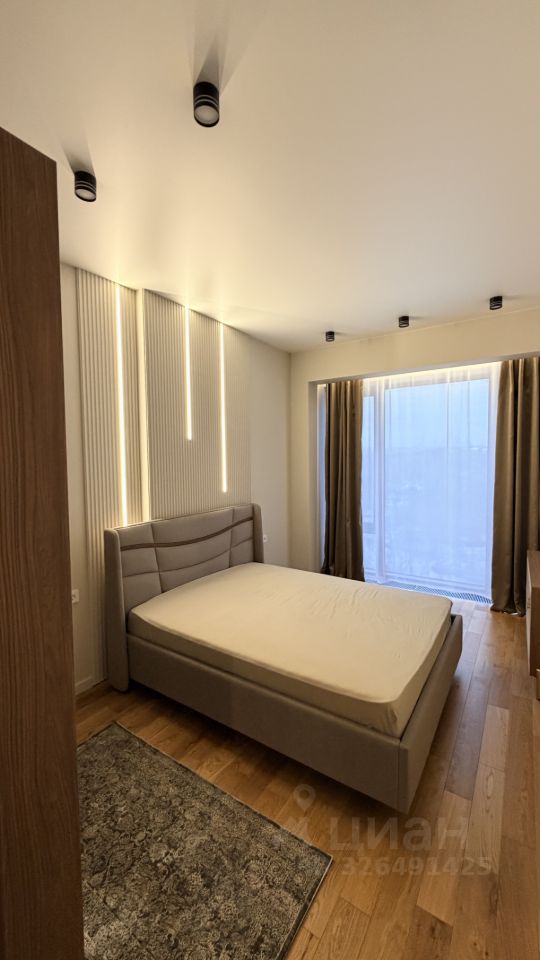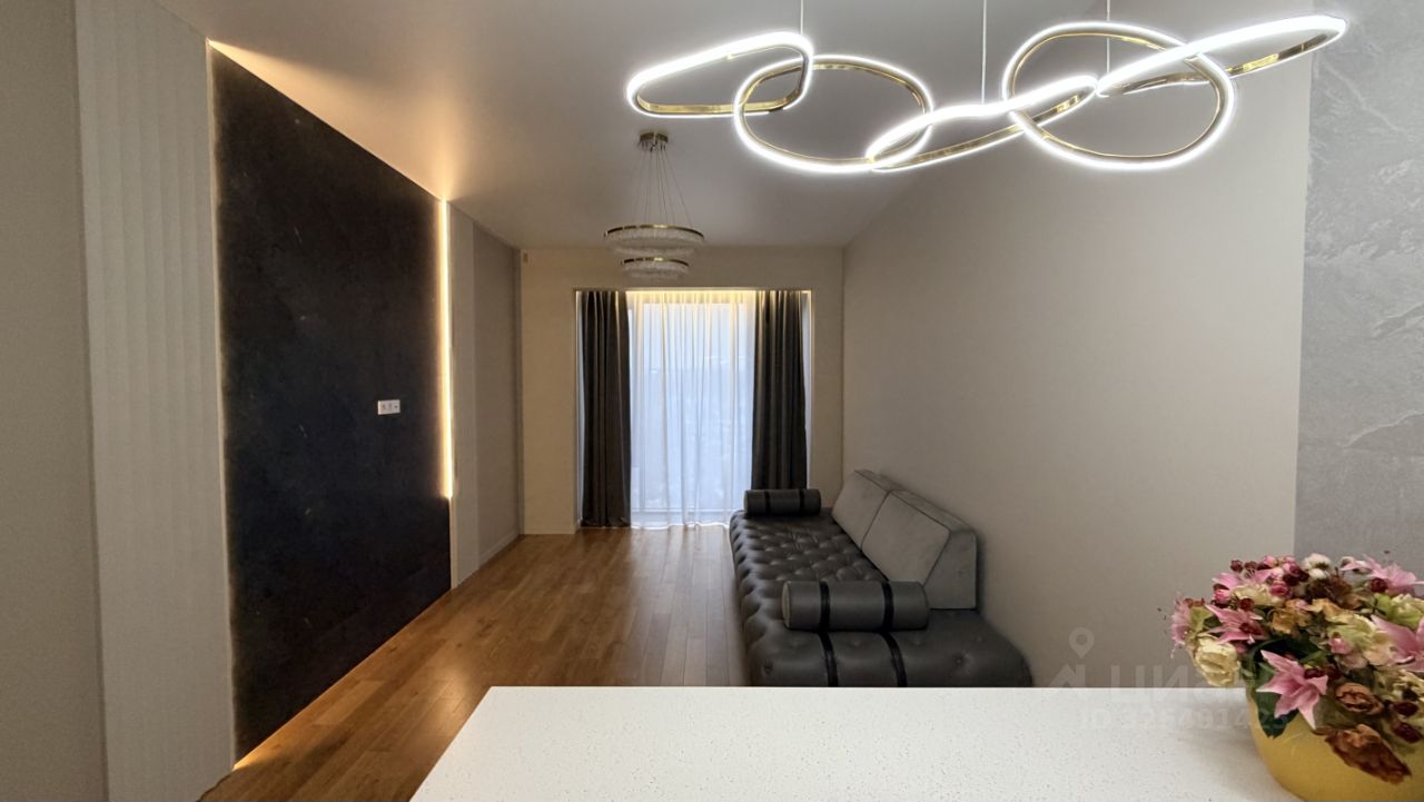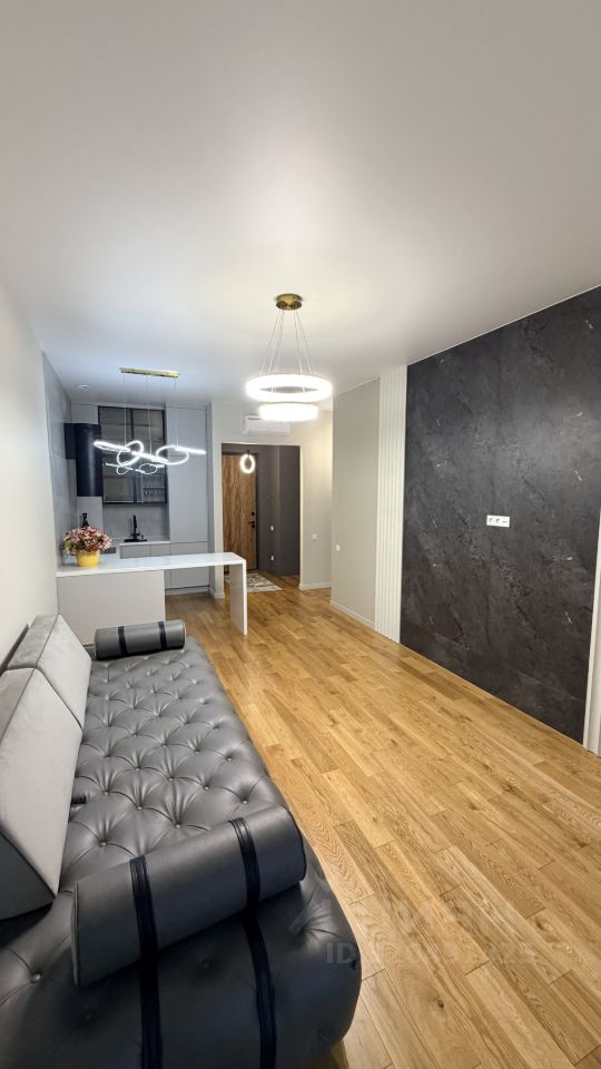 Общая площадь квартиры 55,8 кв.м. Квартира находится на 8 этаже 41-этажного дома с видовыми площадками на крыше дома. В квартире высокие потолки 3,15м.. выполнен дизайнерский ремонт с использованием качественных материалов. Просторная гостиная с Итальянским диваном (очень удобным и красивым) под заказ и кухонным гарнитуром со всей нели вров техникой.