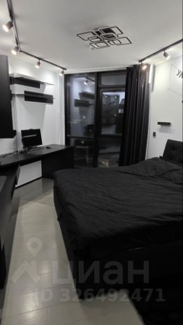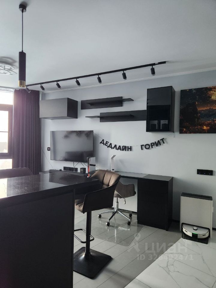Спальня: Просторная кровать с ортопедическим матрасом, шкаф-купе до потолка и удобное рабочее место. Телевизор Samsung QLED 65" с саундбаром, шторы димаут и люстра с цветовой палитрой - все на голосовом управлении.