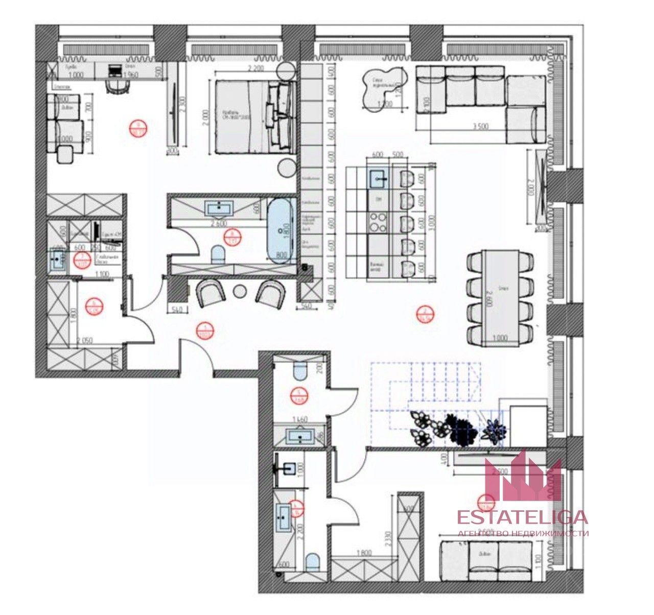 Планировка: 3 мастер спальни, гостевая/детская спальня, просторная кухня-гостиная, постирочная, гостевой сан. узел, лоджия.