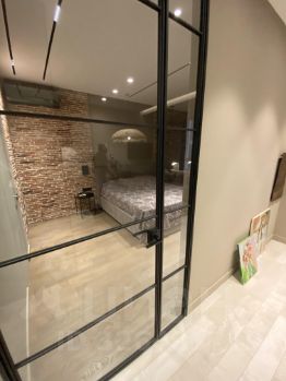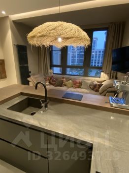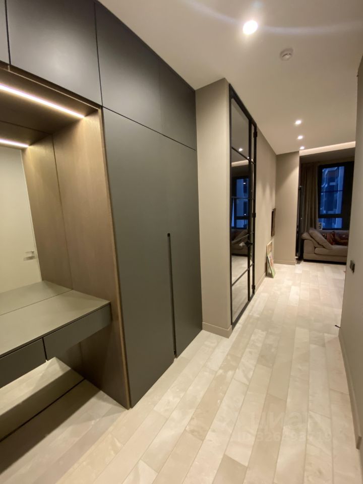 Дизайнерский ремонт выполнен в современном стиле, с авторским надзором, из дорогих материалов и мебелью, выполненной под заказ. Разные сценарии освещения.