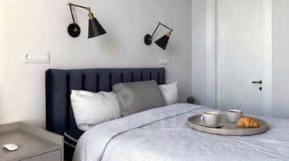 Мастер-спальня: Собственный санузел с ванной Rocca. Установлена кровать Noel, рабочее место, бризер и кондиционер. Шторы Blackout на дистанционном управлении обеспечат идеальный сон.