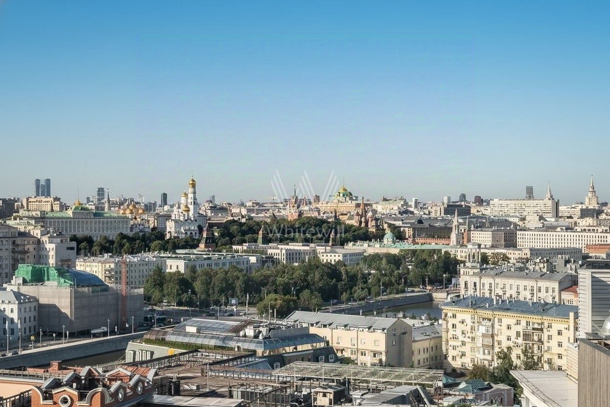 Квартира с авторским ремонтом общей площадью 184 м² расположена на 14-м этаже с панорамными видами на всю Москву