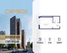 Продается квартира-студия от застройщика: общая площадь 28.00 м², жилая 16.60 м², кухня 5.00 м², 17-й этаж, жилой квартал "Гордость", корпус 40 (секция 1). Срок сдачи: 2 квартал 2029 года.