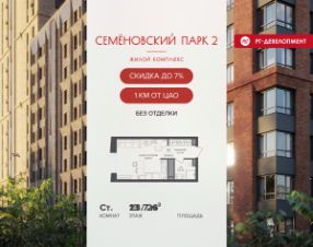 Продается студия 23,7 кв.м. в ЖК "Семеновский парк 2" на 13-м этаже 26 этажного дома.