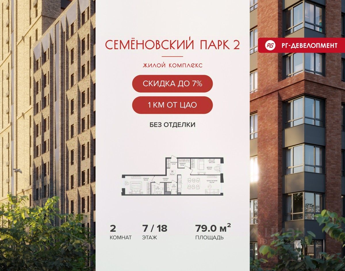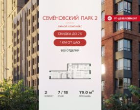Продается 2-к квартира 79,0 кв.м. в ЖК "Семеновский парк 2" на 7-м этаже 18 этажного дома.