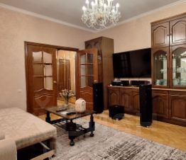 качественныи ремонт (делали для себя) есть 2 большие лоджии, высокие потолки З м. Квартира оснащена всей необходимой для проживания мебелью и бытовои техникой (кухня массив Италия, кондиционер, стиральная машина, посудомоечная машина). Квартира просторная, обшей площадью 52 кв.м. состоит из большого холла-13,5 кв.м с витражным шкафом купе, гостиной 23 кв. м. с ОГРОМНОИ лоджией 6 метров, огромнои уютной кухни-10,8 кв.м. с лоджией 3,4 кв.м., и ванная комната 5 кв.м. с натуральным полом из камня Италия! В 1 минуте ходьбы от дома магазин Пятерочка рядом, Азбука вкуса, также много ресторанов разного уровня кафе, аптек, банков, салонов