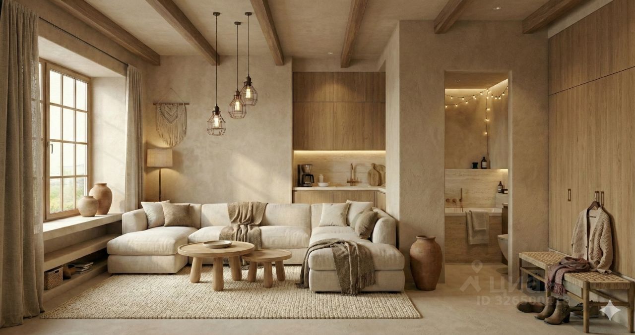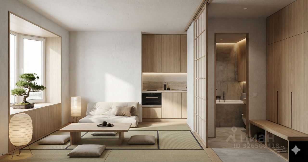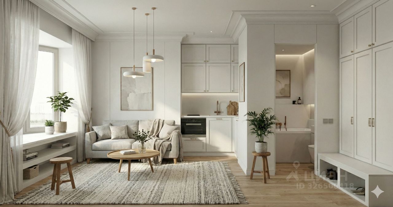 Квартира-холст 32,4 м² — чистовая отделка на ваш вкус. Приложил визуализации в разных стилях: покажу, что можно сделать с этим пространством. Грамотная планировка с кухней-гостиной, большие окна.