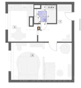 Общая площадь квартиры составляет 38 квадратных метров, она включает в себя просторную кухню, гостевую зону, зону спальни, совмещенный санузел, застекленный БАЛКОН, прихожую.