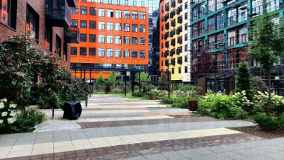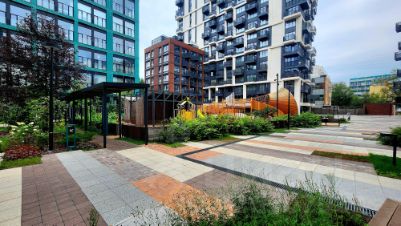 Въезд и выезд в трех уровневый подземный паркинг за пределами территории, что позволяет насладиться прекрасной внутренней территорией.