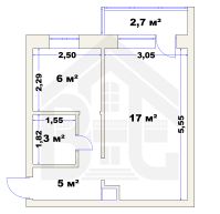 Площадь: Комната — 17 м², кухня — 6 м².