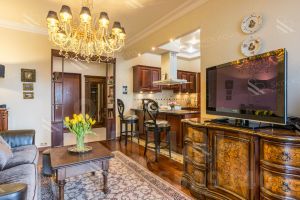 Люксовые хрустальные люстры итальянских брендов Pataviumart в гостиных и спальне создают атмосферу роскоши.