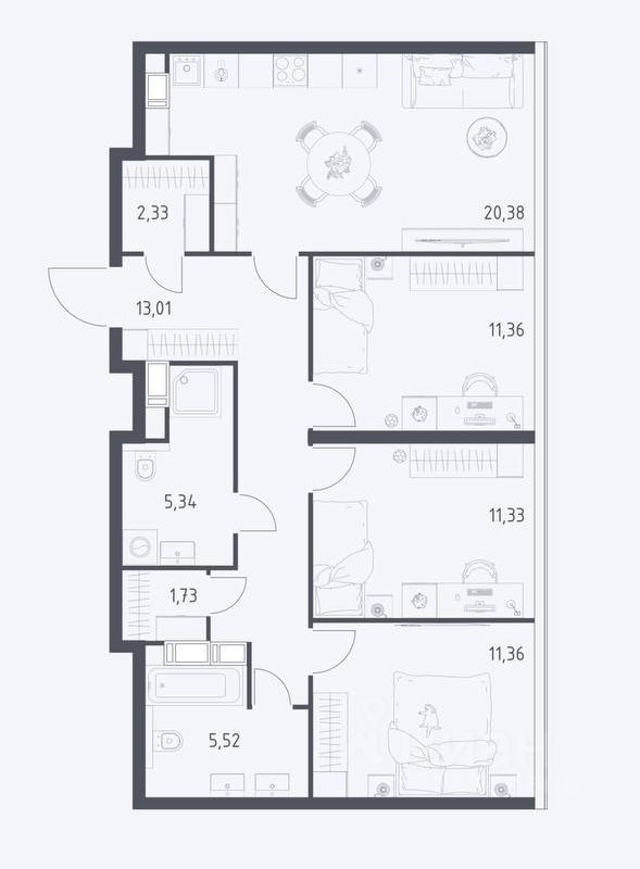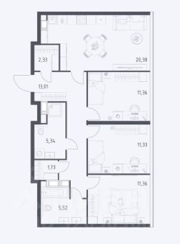 Квартира с чистовой отделкой, отличная планировка (см. фото):