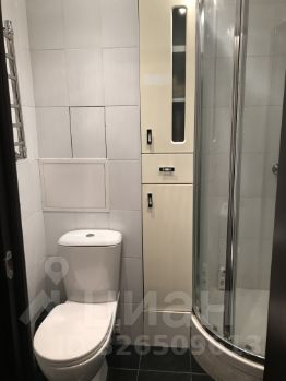 Санузел совмещенный. Отделан плиткой, душевая кабина.