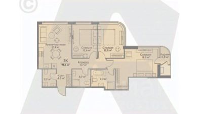 - 2 детские/гостевые спальни.