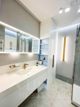 2. Санузлы: мебель на заказ, шкафы в потолок, подсветка полок, фурнитра Blum, фасады мдф эмаль, смесители Kueco, тумбы Kueco, аксессуары Kueco, подвесные унитазы TOTO и Villeroy.