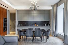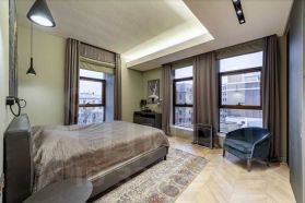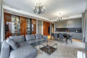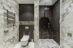 В квартире выполнена премиальная отделка с использованием натуральных материалов. Установлена мебель, техника и сантехника от ведущих мировых брендов.
