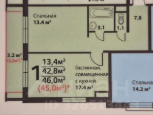 - общая площадь 42,8 м²;