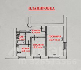 Изолированные комнаты площадью 16,7 кв.м и 8,9 кв.м, площадь кухни - 5,4 кв.м.