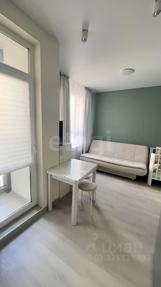 В квартире дизайнерская отделка, функциональная планировка, гостиная 10 кв.м, панорамная лоджия с видом в закрытый двор 1.6 кв.м, гардероб, стильный совмещенный сан.узел 3.6 кв.м. Студия полностью меблирована, со всей необходимой техникой. В перспективе можно легко провести зонирование кухни от гостиной для полноценной однокомнатной квартиры, так как в студии два окна.